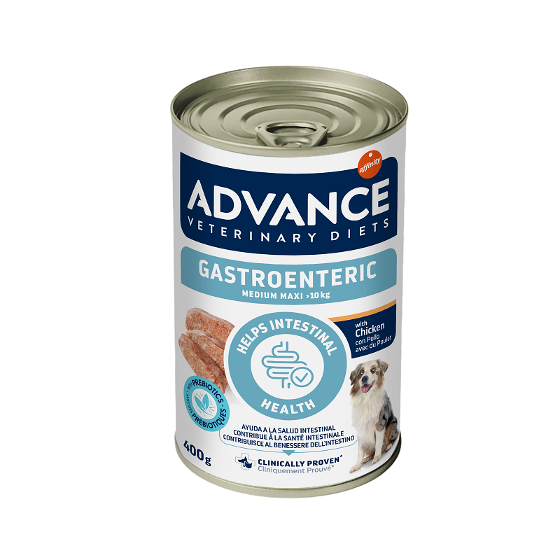 ADVANCE VETERINARY DIET DOG GASTROENTERIC MED/MAXI 400G - KONSERVAI VIDUTINIŲ IR DIDELIŲ VEISLIŲ ŠUNIMS, TURINTIEMS VIRŠKINIMO SUTRIKIMŲ