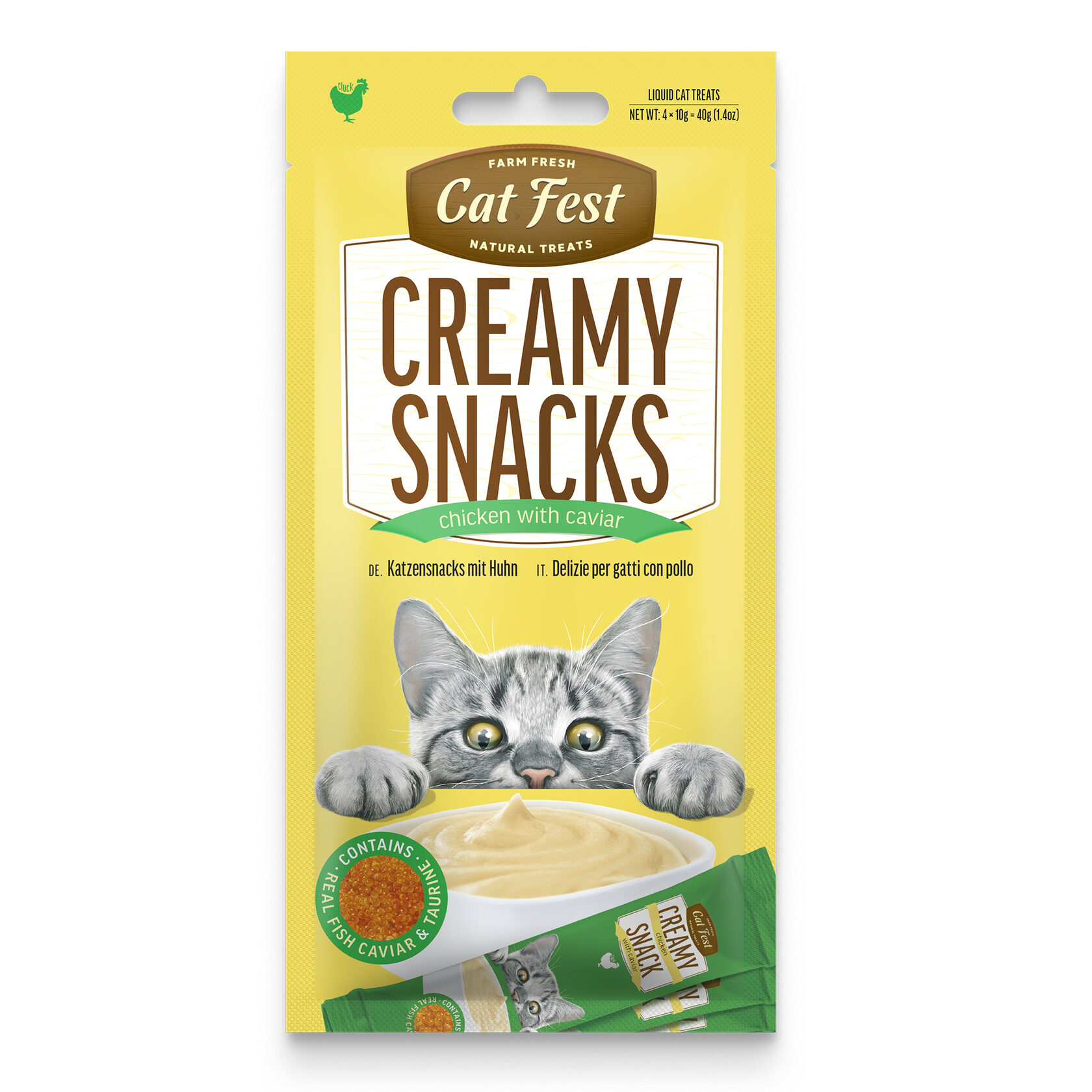 Catfest Cat Fest Kreminė užkanda su vištiena ir ikrais, 4 × 10 g