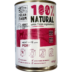 Prefera Fresh Farm CAT Smooth pate with pork 400gr - pilnvērtīga barība kaķiem, pastētes veida konservi kaķiem, ar cūkgaļu.