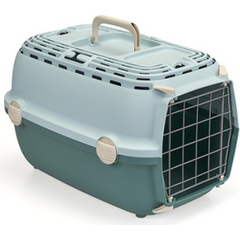 STEFANOLAST Transp.bokss HORIZON 1 metal. (angļu zaļš/gaiši zaļi-zils), izmēri cm 48 x 32 x 30h - ir praktisks mājdzīvnieku plastmasas būris, kas ļauj ērti un droši ceļot ar mājdzīvniekiem, ar drošības jostu stiprinājumu vietam sānos.