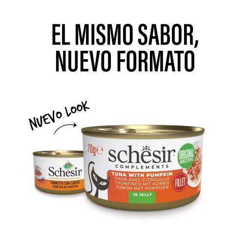 Schesir papildinis maistas yra idealiai pritaikytas kombinuoti su sausa maistu mišriai dietai, grįstai natūralių ingredientų kokybe: jis papildo sausą maistą atidžiai parinktomis, garuose keptomis tuno filejomis ir švelniu moliūgo skoniu, praturtindamas jūsų katės mitybą.